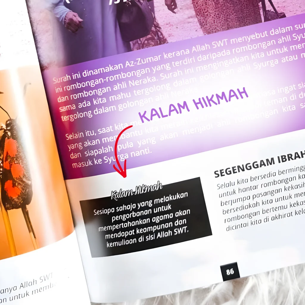 ✓ Pelbagai info tambahan yang komprehensif seperti lipatan sejarah, petikan hadis, fakta saintifik, dan doa-doa yang relevan. ...